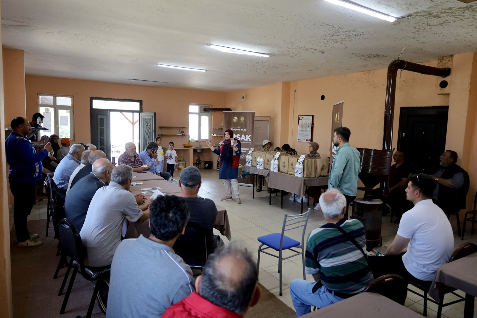 SAÜ’lü bilim insanlarının binlerce maddenin sentezlenmesi ile elde ettiği ve çiftçilerin tek kurtuluşu olarak yorumlanan ‘tutSAK’ın kullanımıyla ilgili çiftçiye brifing veriliyor.