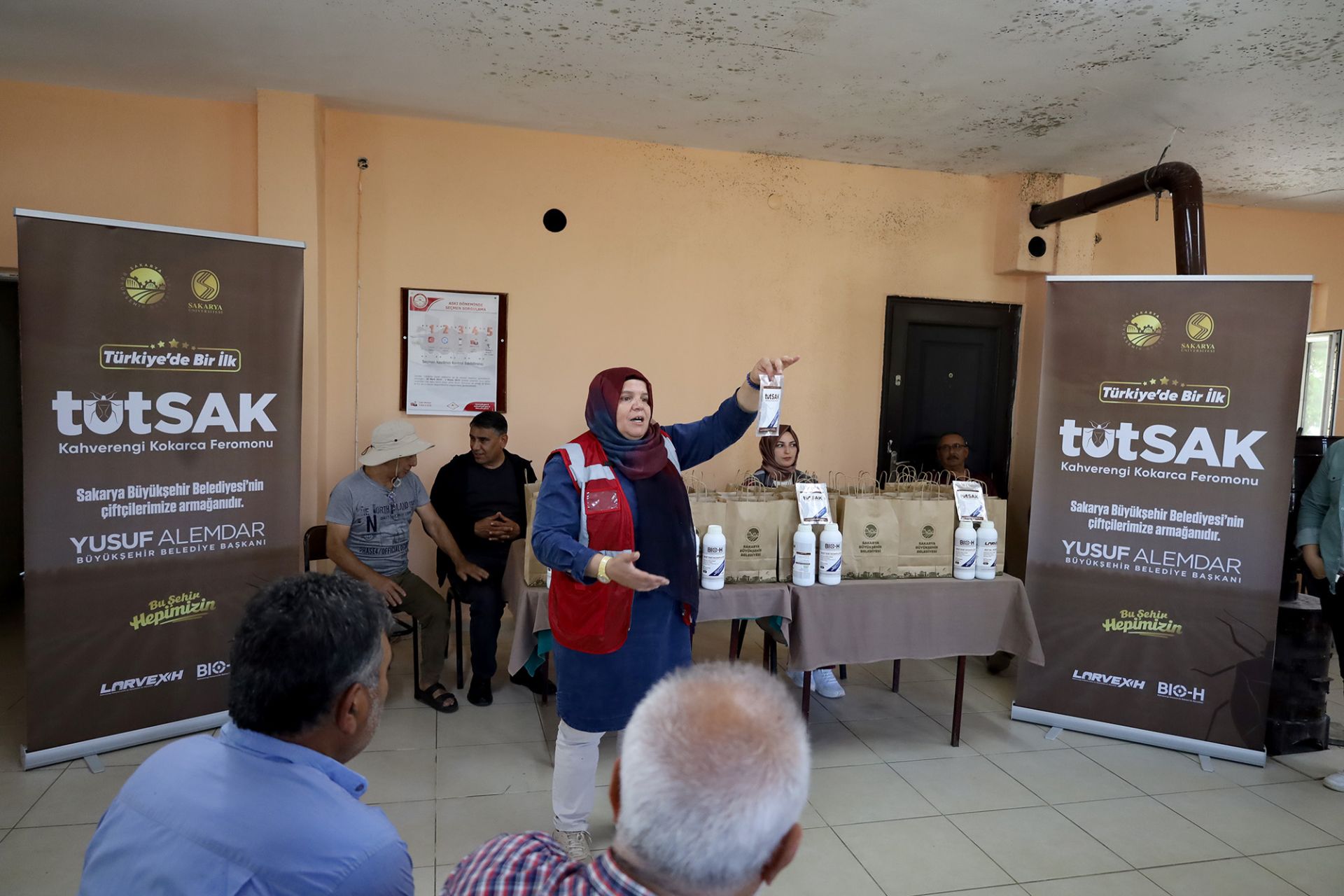 Büyükşehir Belediyesi’nin Türkiye’nin kâbusu kahverengi kokarcaya karşı çözüm olarak üniversite iş birliği ile ürettiği TUTSAK ile sahada böceğe karşı etkin mücadele başladı. Büyükşehir ekipleri mahalle mahalle gezerek çiftçilere ürünü ulaştırıyor ve feromonun tuzak malzemesi üzerinde doğru uygulanması için tüm detaylarıyla anlatıyor. Vatandaşlar bu mucize ürünün piyasaya sürülmesiyle ilgili, “Kokarca belası her tarafımızı sardı"" dedi